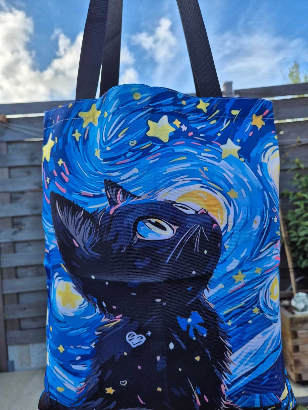Tote bag – Kat, maan en sterren (incl. verzendkosten)