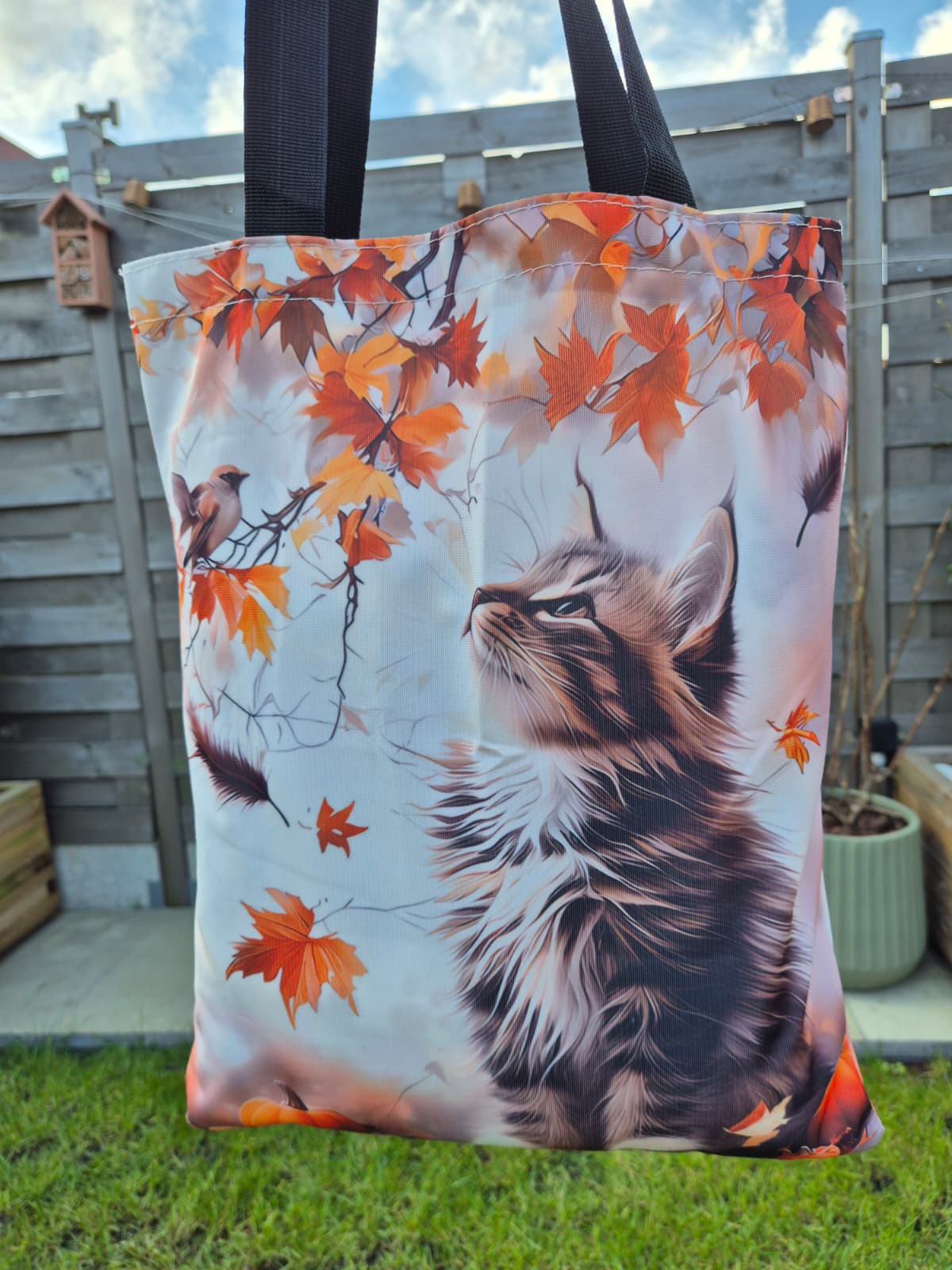 Tote bag – Kat met vallende blaadjes (incl. verzendkosten)