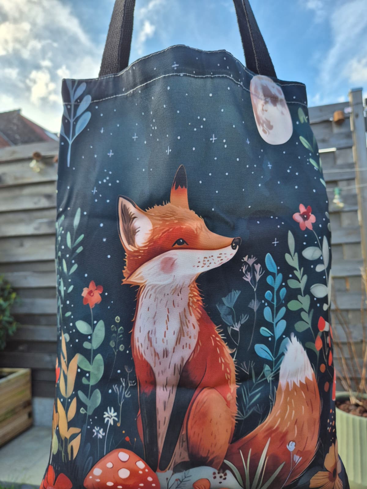 Wasbare en herbruikbare schoudertas met print bedrukt langs beide kanten.